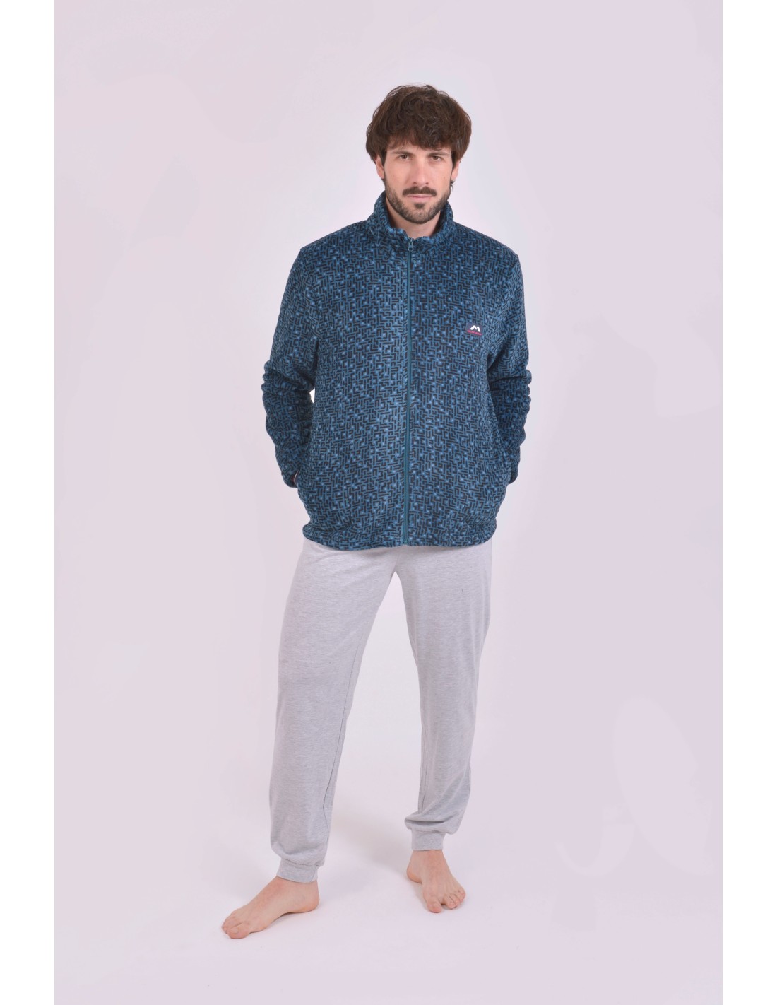 PIJAMAS AL POR MAYOR Bata larga para hombre de poliéster marca Kinanit cuadros KINANIT KIN239025 Bata larga de hombre 100% poliéster marca Kinanit. A cuadros con cuello, puños, bolsillos y cinturón de color negro liso. Composición 100% poliéster. View