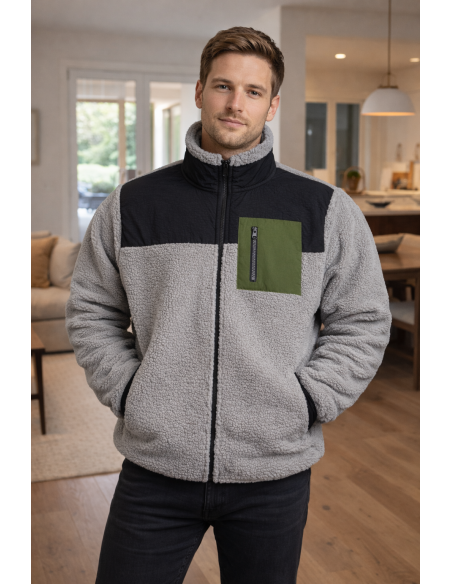 Batas de hombre Bata corta de hombre con cremallera marca Carwin efecto pana CARWIN CARD503 Bata corta de hombre con bolsillos laterales y en el pecho. Composición: 100% poliéster. View
