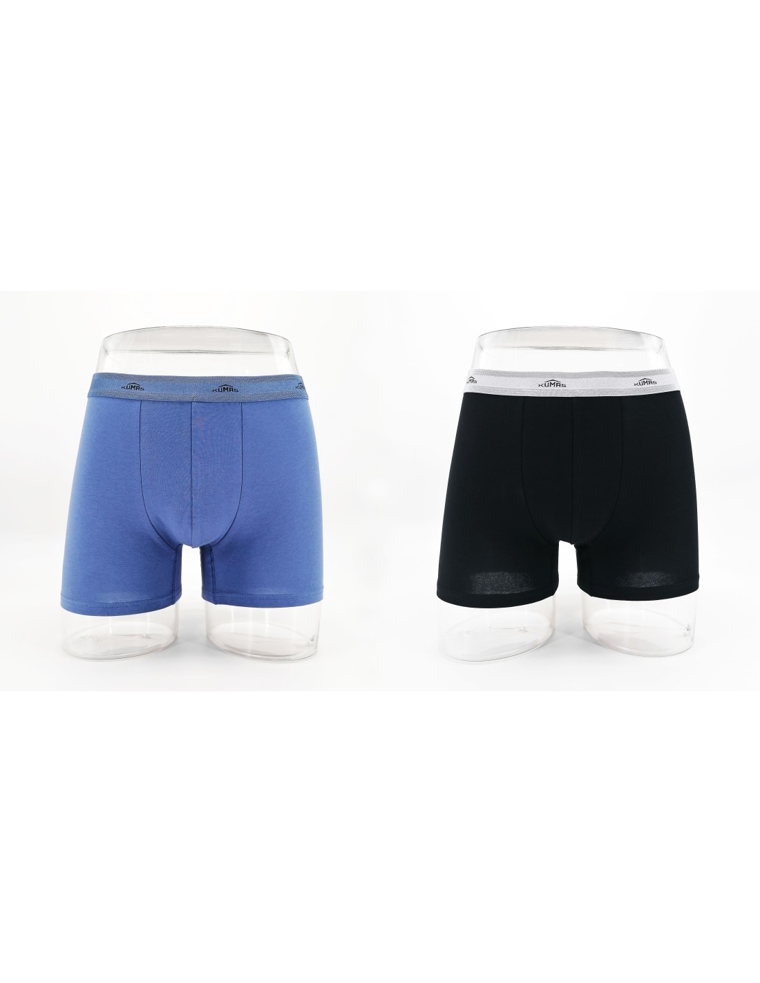 Pack de 2 bóxers de hombre de color azul y negro con elástico antipresión que ajusta la prenda a la fisionomía sin oprimir.