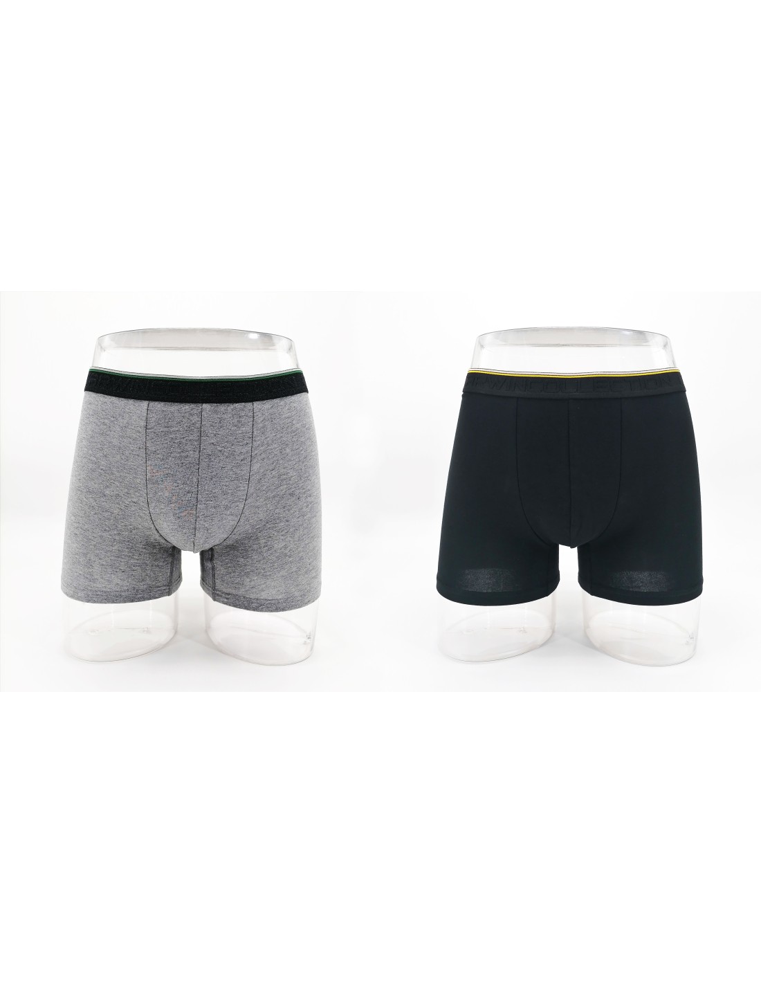 Pack de 2 bóxers de hombre de color gris y negro con elástico antipresión que ajusta la prenda a la fisionomía sin oprimir.