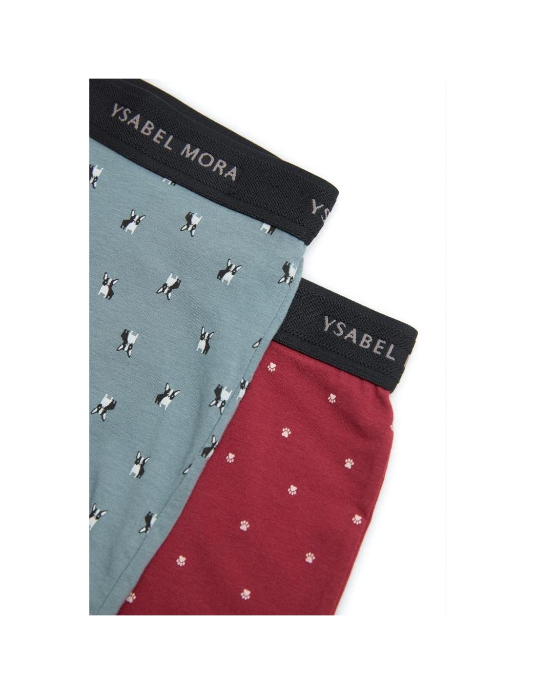 Cada pack incluye un calzoncillo de color aguamarina y otro de color rojo, ambos con estampados diferentes para aportar variedad al conjunto.