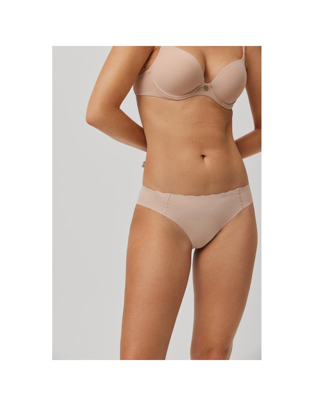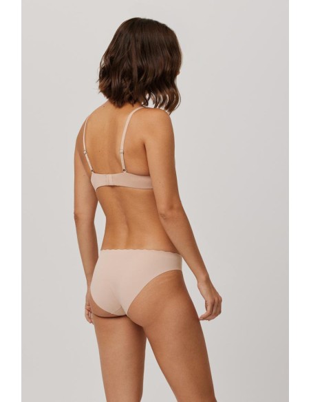 Braga mini de tejido de microfibra cortada a láser con cinturilla ondulada y con costuras muy discretas que hacen que la prenda sea imperceptible bajo la ropa. La comodidad y sujeción de esta braga es algo a destacar.