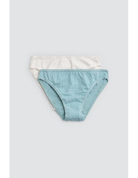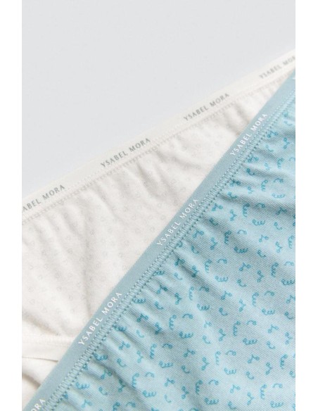 Pack compuesto por braguita con estampado de corazones y braguita con estampado de rizos.