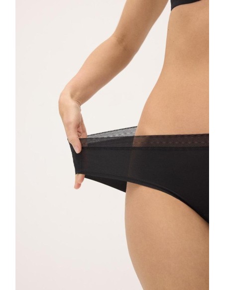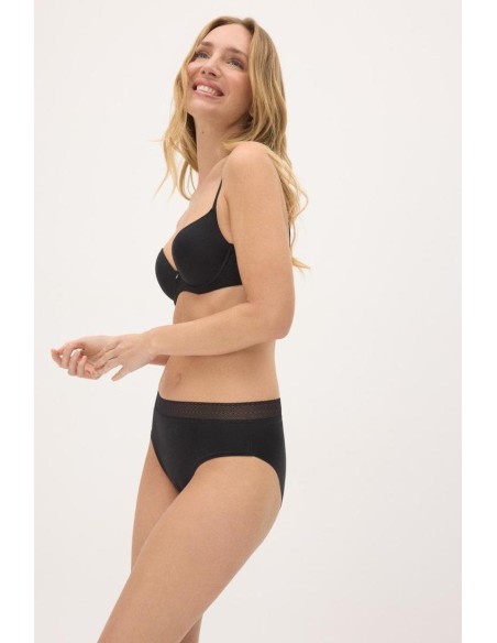 Sus acabados invisibles la hacen ideal para usar debajo de ropa ajustada al cuerpo sin que se note.