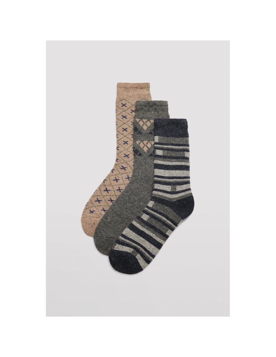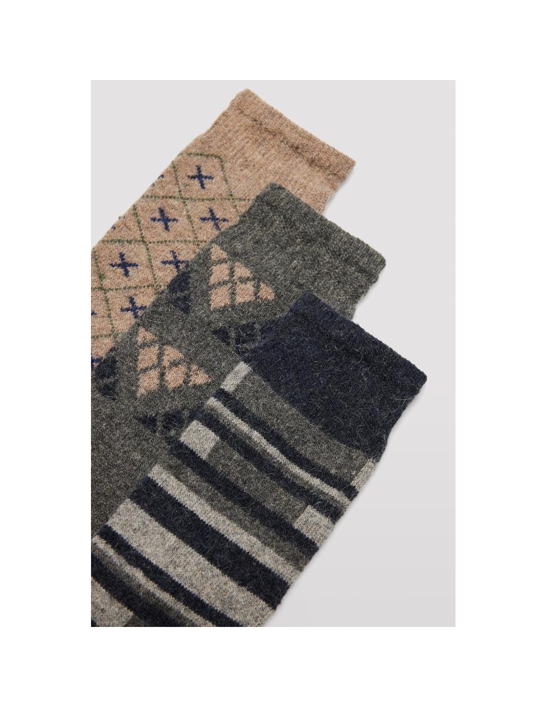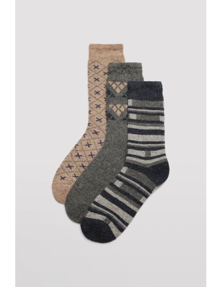 Caja de 12 pares de calcetines de angora para hombre con puño antipresión con 3 diseños diferentes.