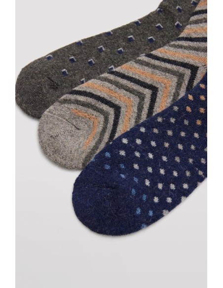 Caja de 12 pares de calcetines de angora para hombre con puño antipresión con 3 diseños diferentes.