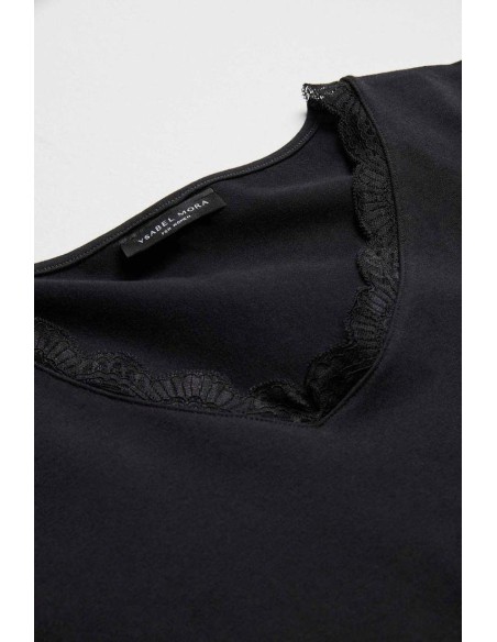 Camiseta de manga larga y escote redondo en tejido Cotton Nature. Las fibras naturales de este material aportan un extra de suavidad a la prenda. Sus acabados con costuras planas invisibles evitan las marcas y favorecen una mayor adaptabilidad y un ajuste ergonómico perfecto. Modelo básico de gran confort pensado para el día a día. Decoradas con blonda. Confeccionadas con material antialergénico.