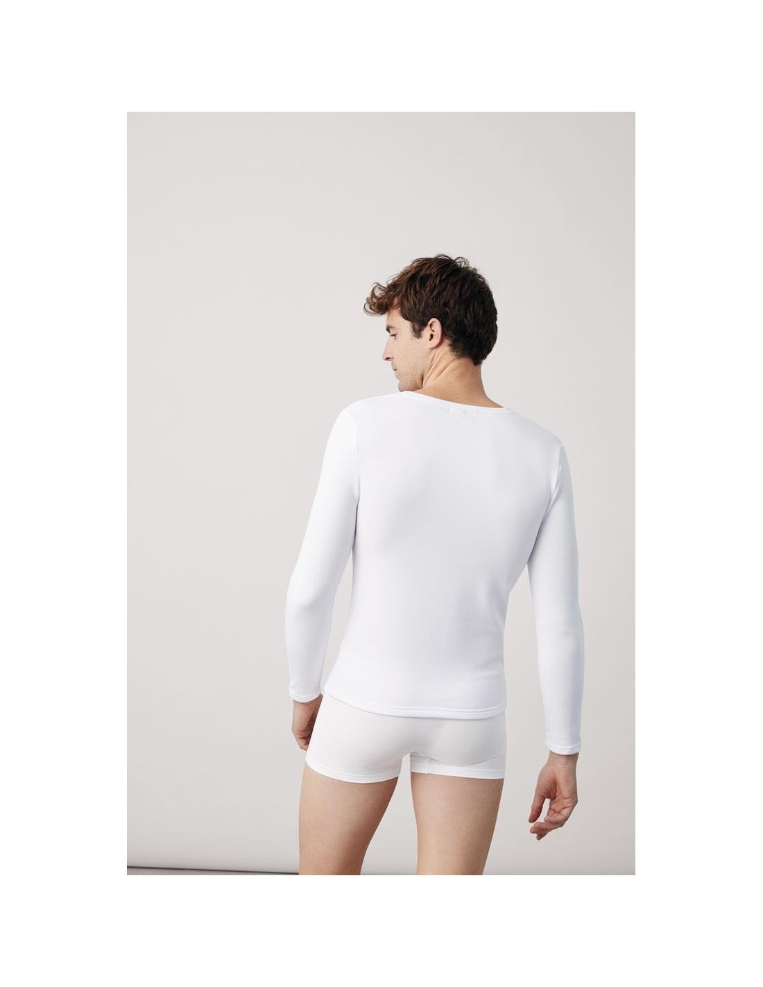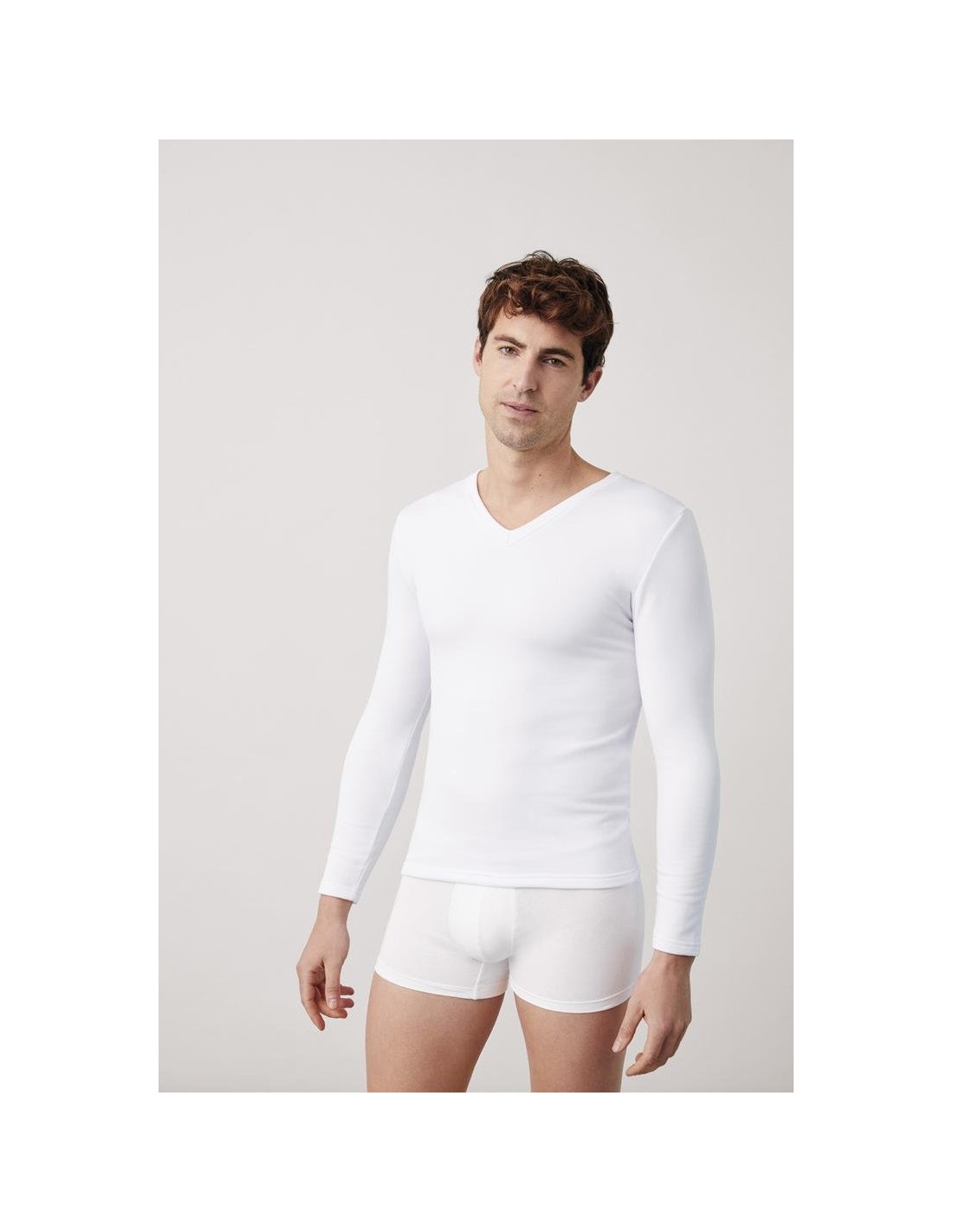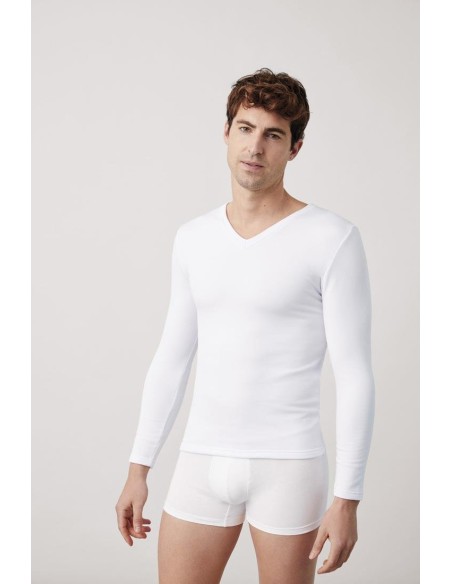 Camiseta térmica para hombre de manga larga y cuello de pico.
