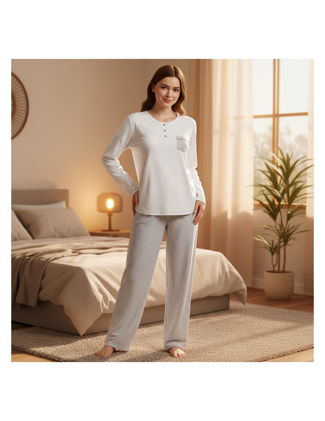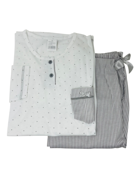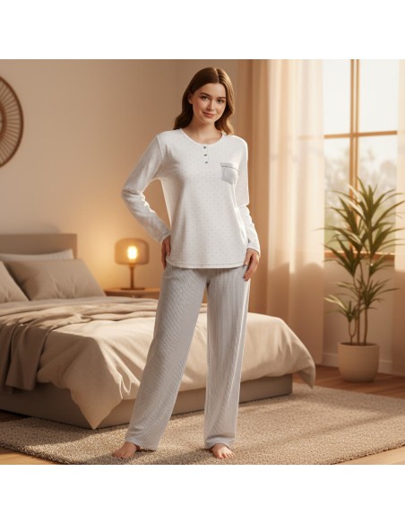 Otoño-Invierno para mujer Pijama de mujer para invierno marca Muslher círculos MUSLHER MUS236606 Pijama de mujer para invierno compuesto por camiseta rosa con cierre de 5 botones y pantalón con círculos color rosa y puntos morados. Camiseta de punto milano y pantalón de jaquard. View