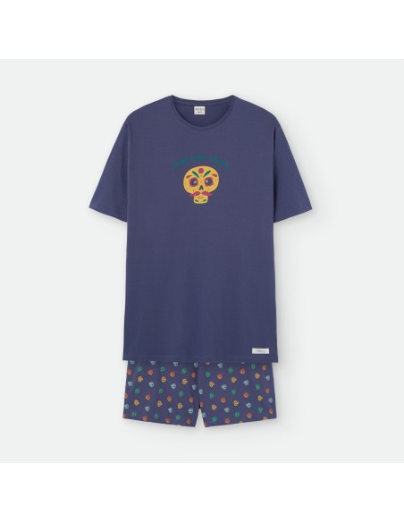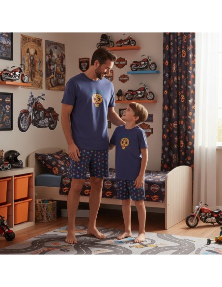Pijama de verano de algodón para niño compuesto por pantalón corto y camiseta de manga corta.