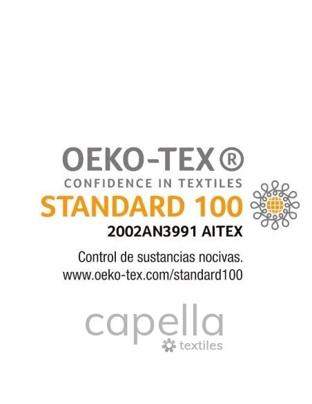 Seguro e higiénico con el Certificado OEKO-TEX® del Laboratorio Tecnológico AITEX, garantiza que está libre de cualquier sustancia perjudicial para la salud o la piel.