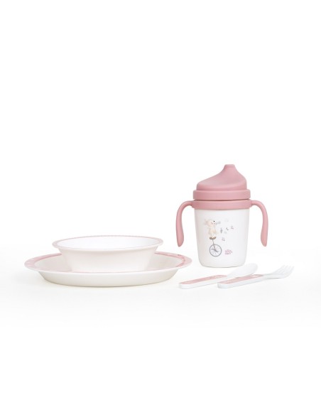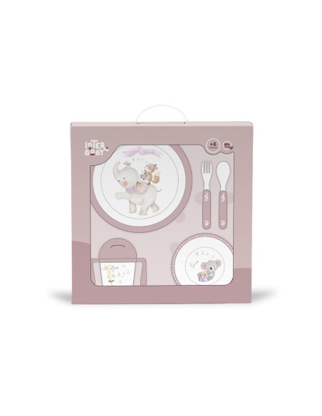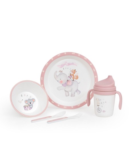 - Plato grande con borde rosa y dibujos de animales músicos.