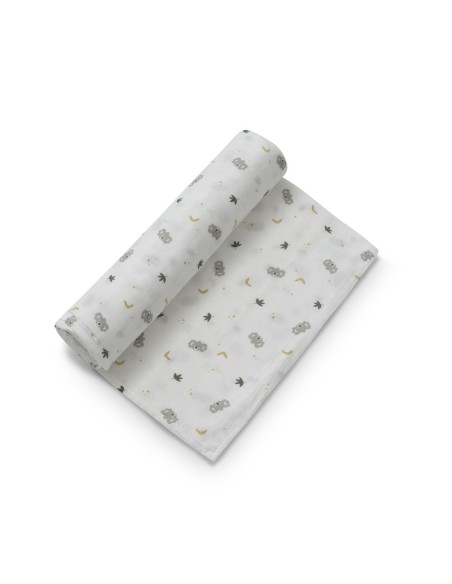 Muselina multifunción (120cm x 120cm). Su tejido suave y transpirable permite utilizarla en cualquier lugar a modo de arrullo, toalla o cambiador.
