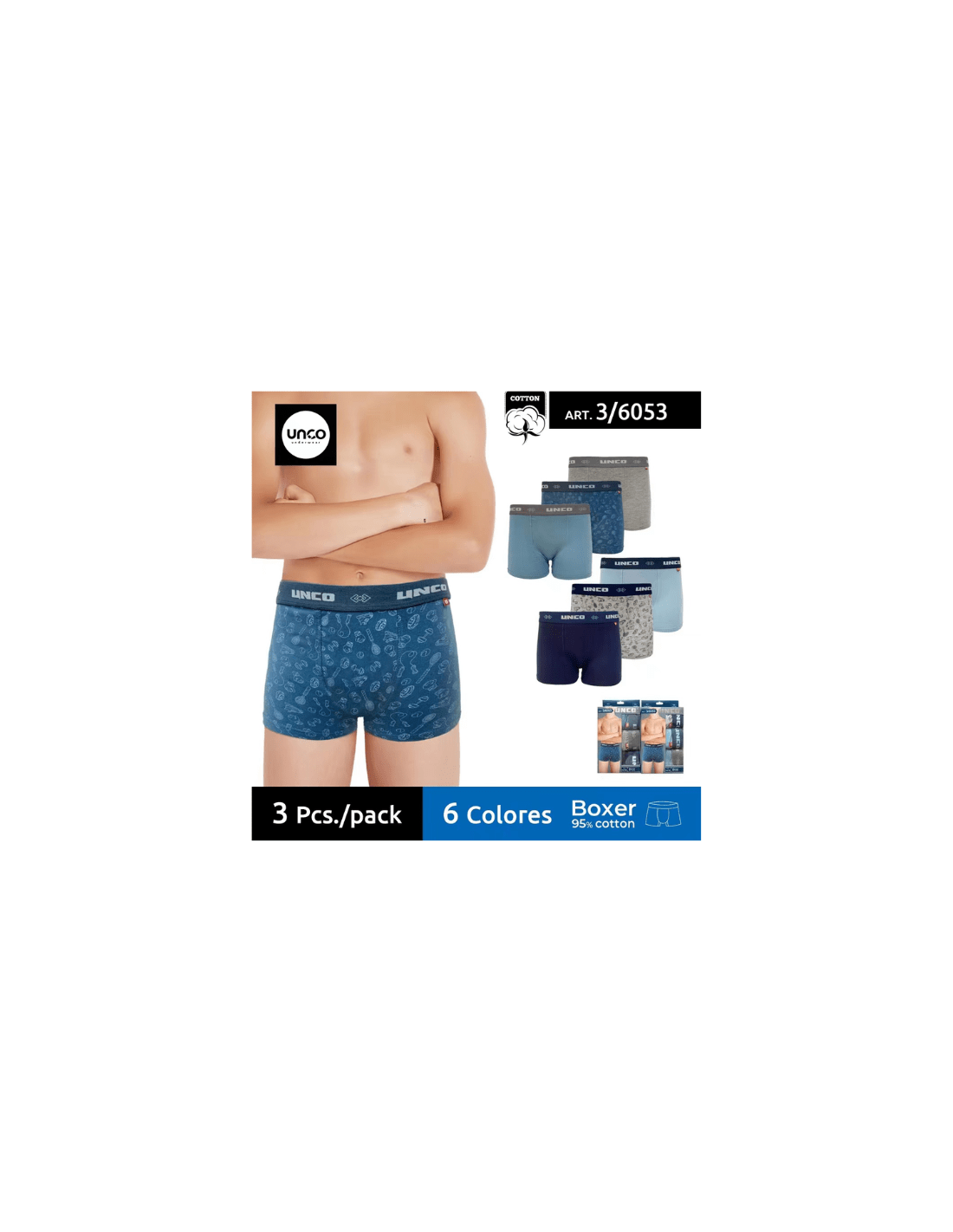 Bóxer infantil de algodón en caja de 3 unidades de la marca UNCO.