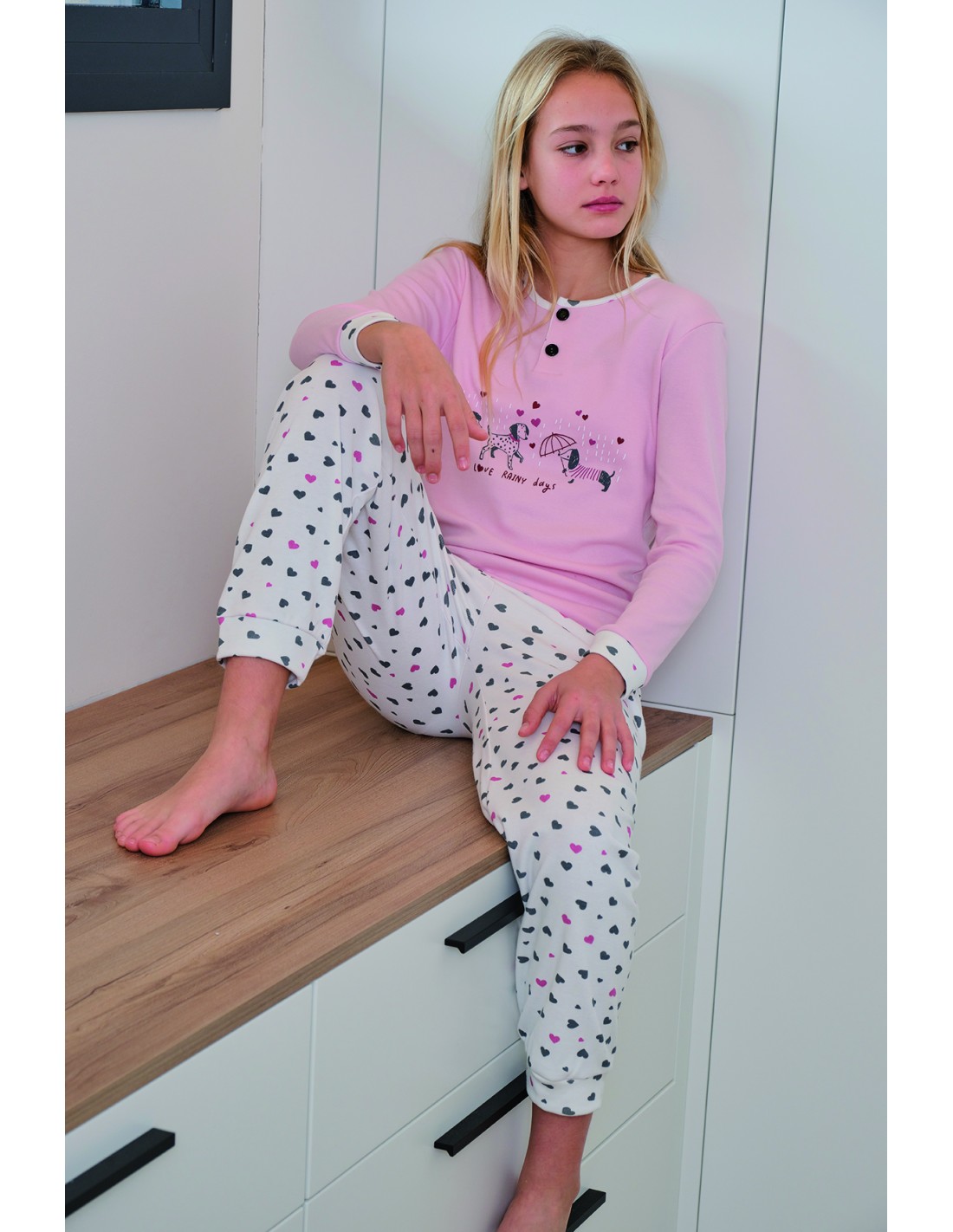Pijama infantil de interlock perchado para niña marca Muslher rainy days