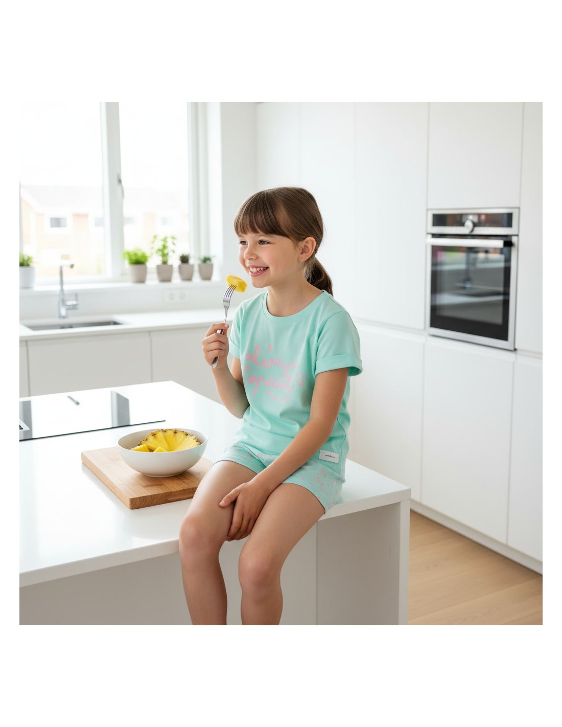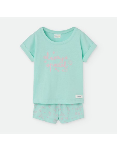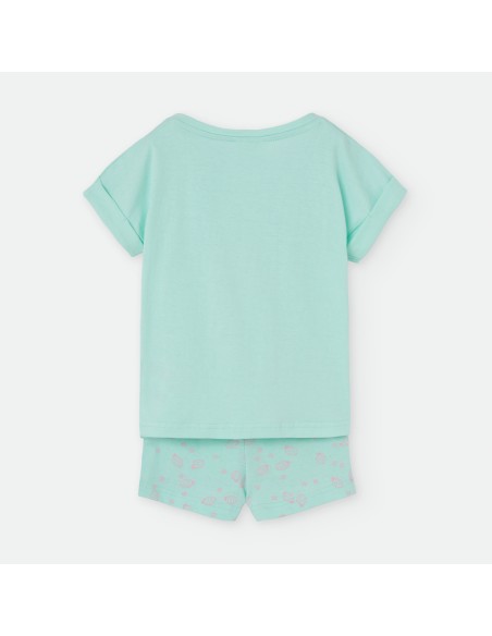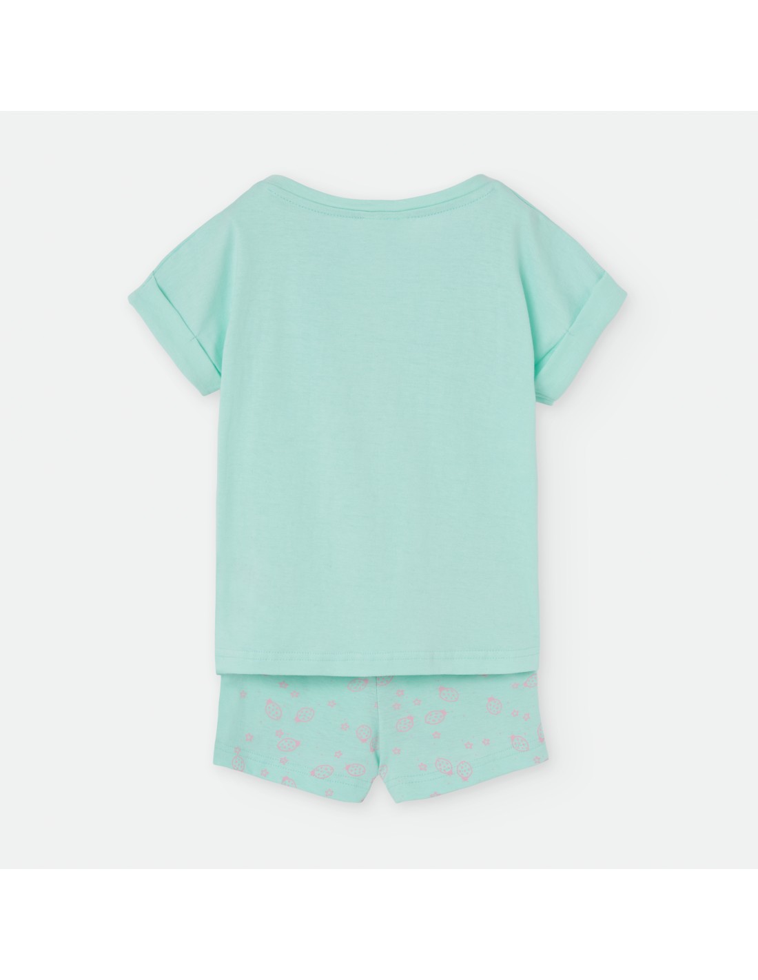 Pijama de verano de algodón para niña compuesto por pantalón corto y camiseta de manga corta.