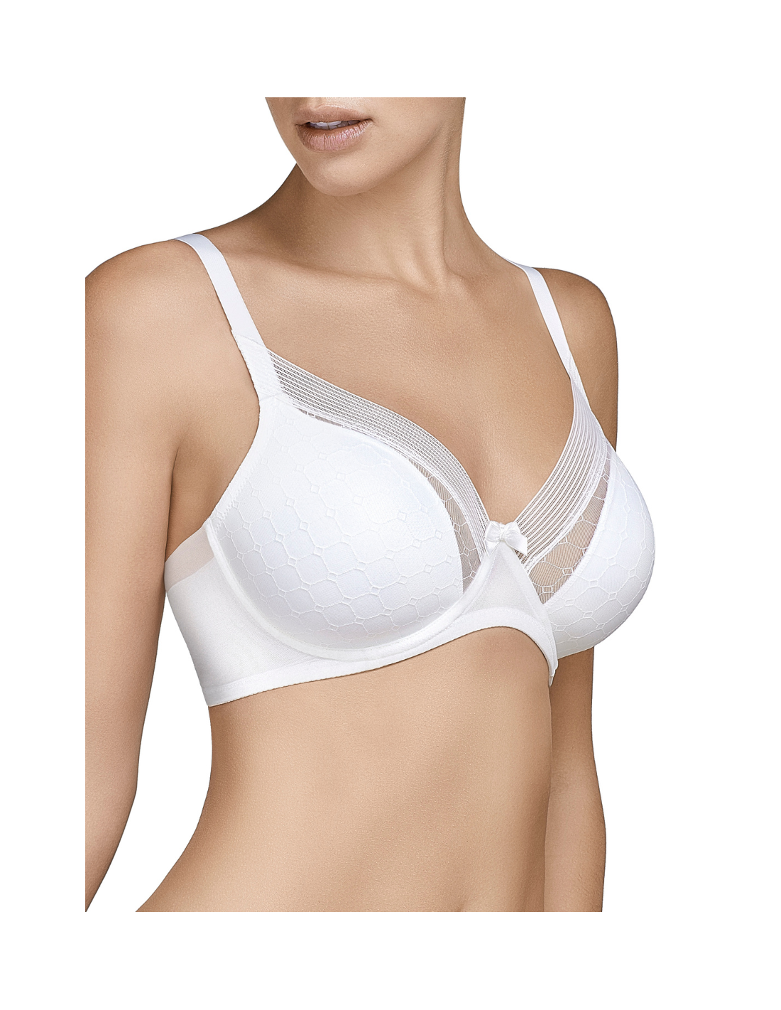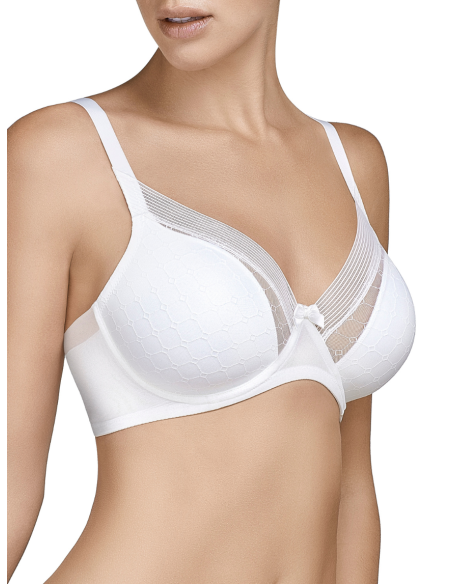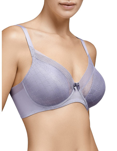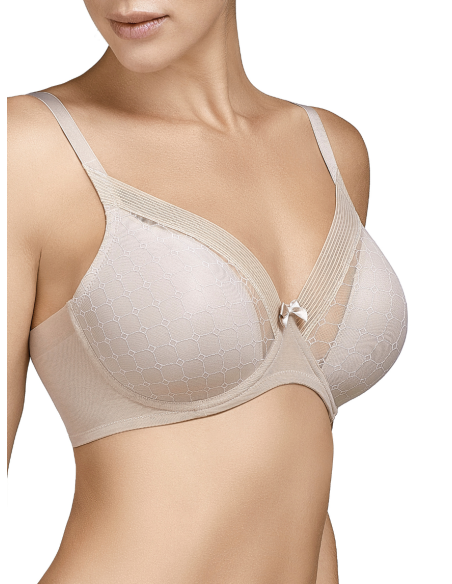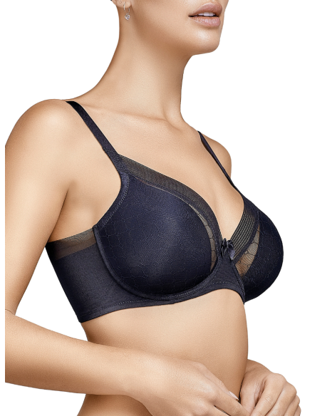 Novedoso y sofiscticado sujetador juvenil con aros y sugerente copa de relleno escotada.