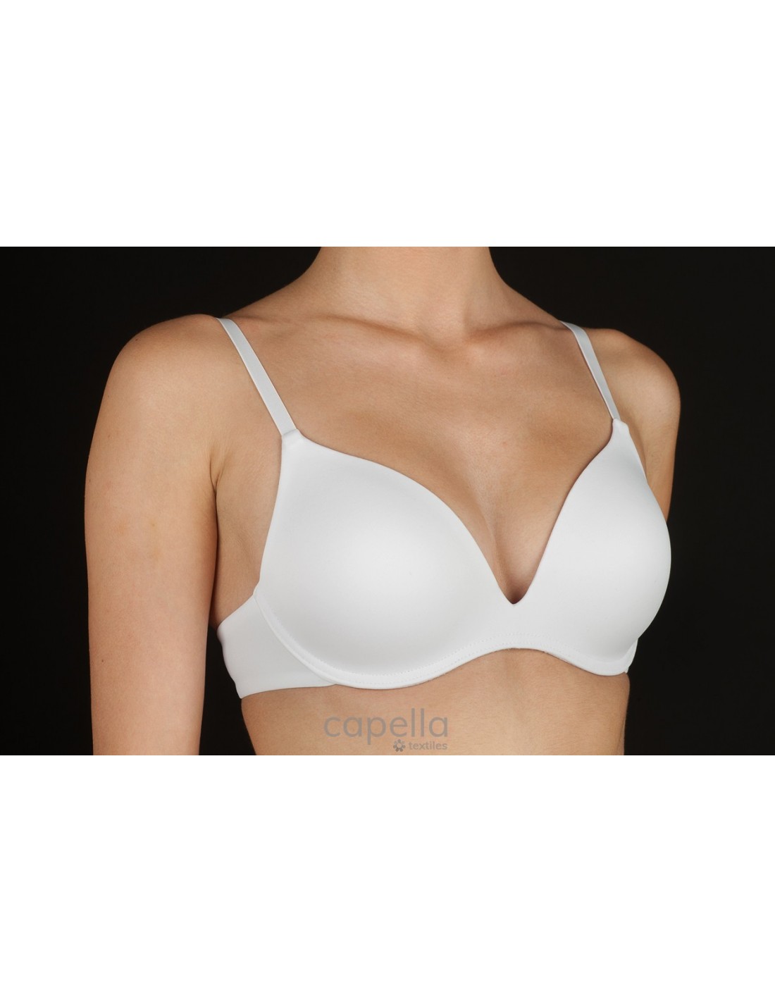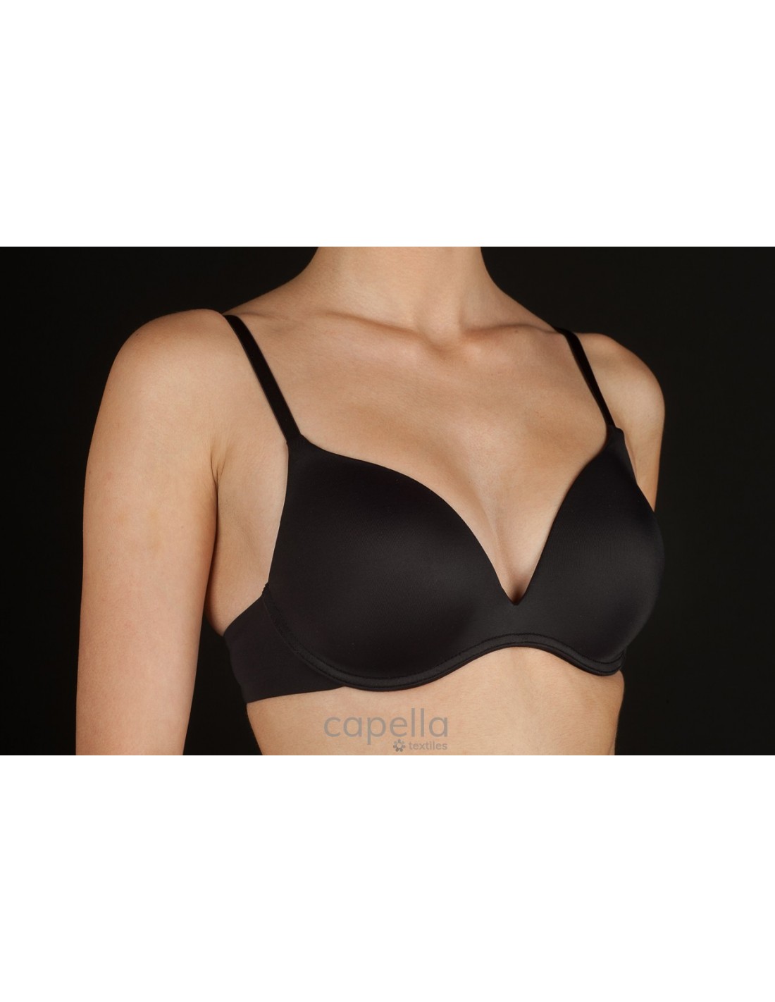 Sujetador básico de microfibra con aros flexibles de silicona y escotada copa de relleno.