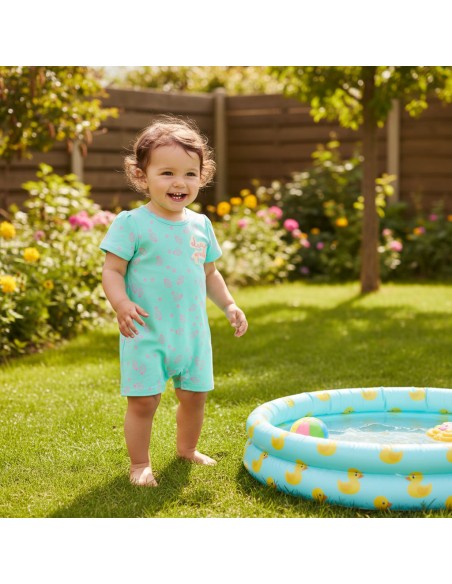 Pelele corto para bebé. Con cierre de click trasero y en la entrepierna.