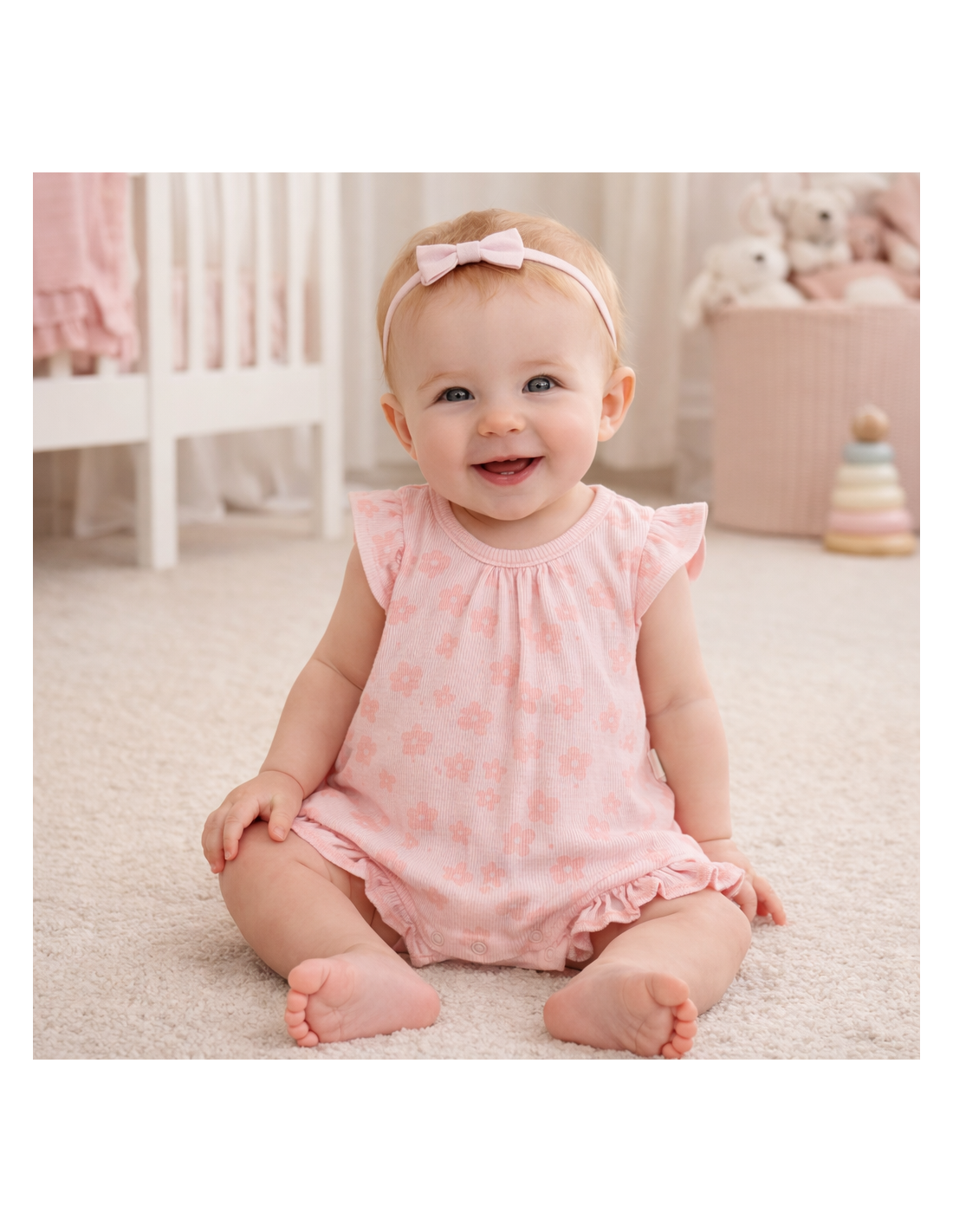 Pelele corto para bebé. Con cierre de click trasero e inferior.
