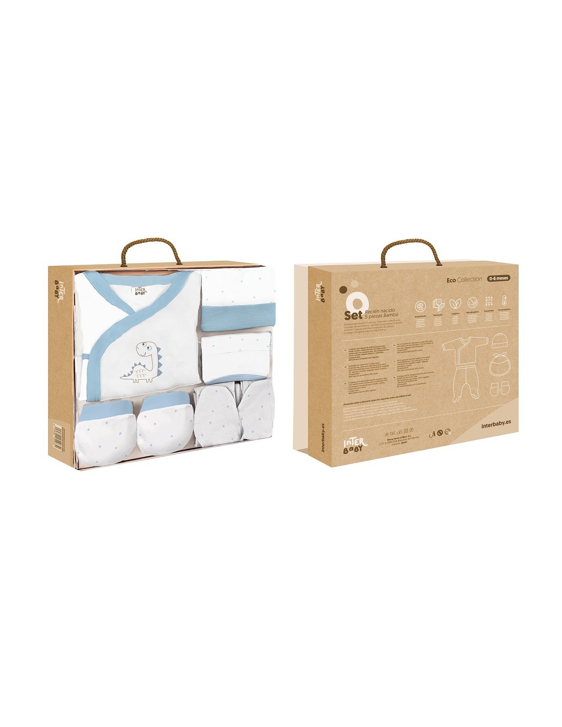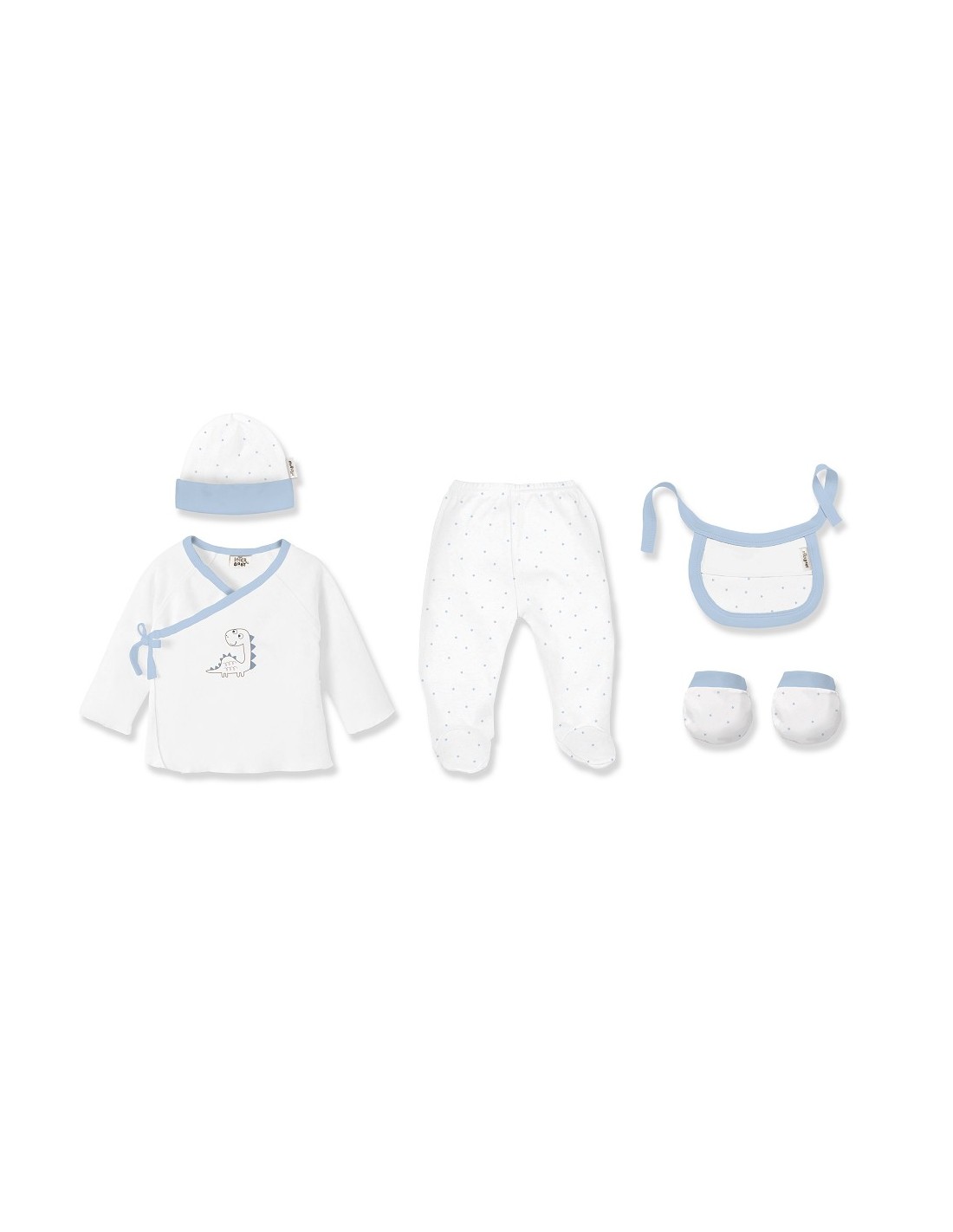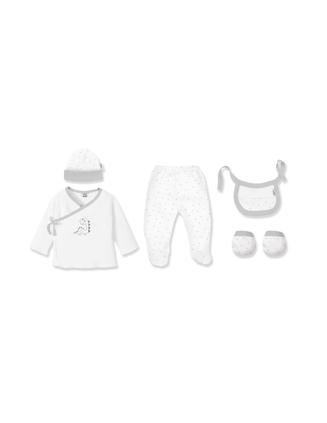 Set de 5 piezas para primera puesta de bebé marca Interbaby dinosaurio