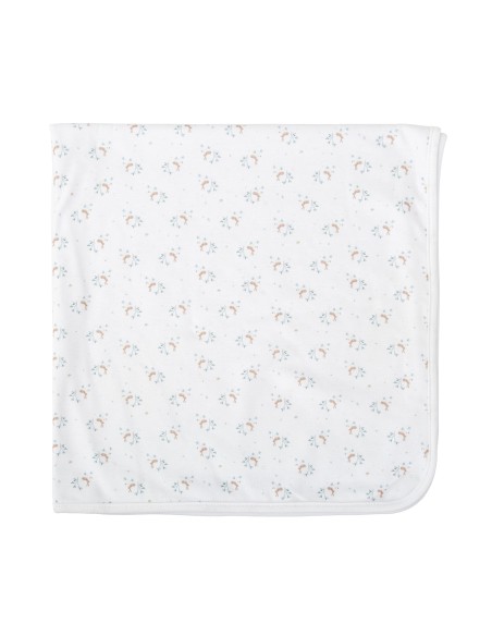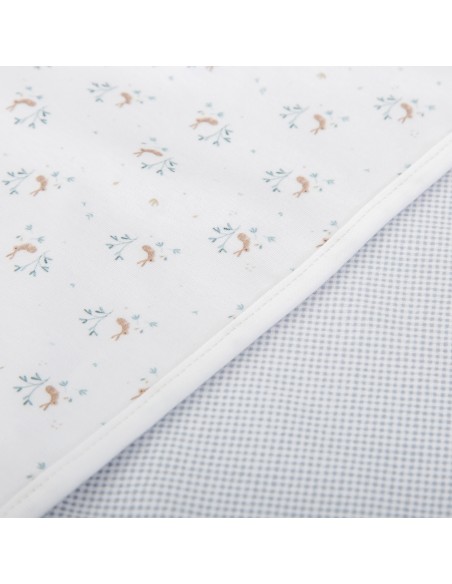 Arrullo reversible de algodón para bebé con estampado de conejitos por una cara y a cuadros por la otra.