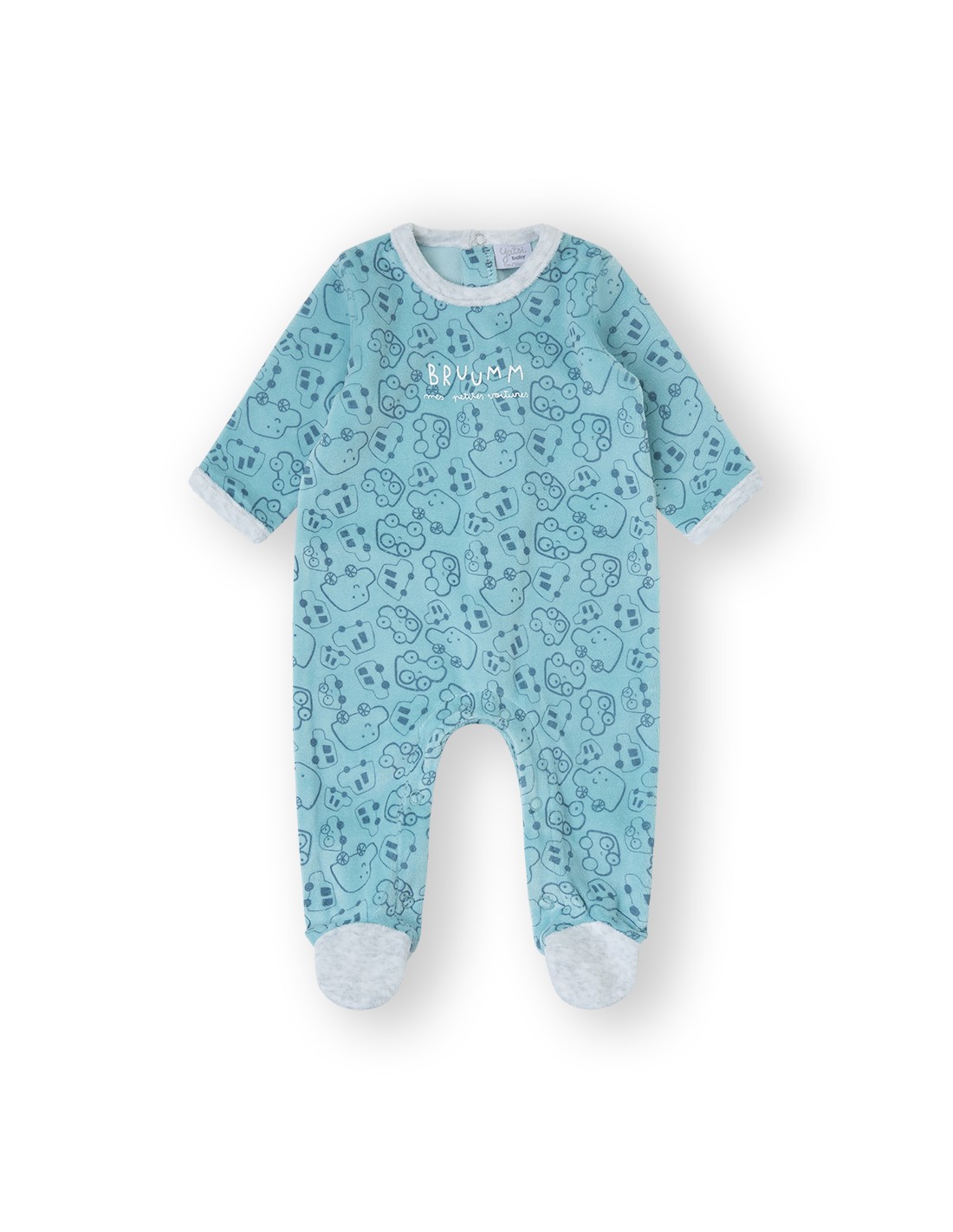 Pelele para bebé de la marca Yatsi. De color verde lago con estampado de coches.