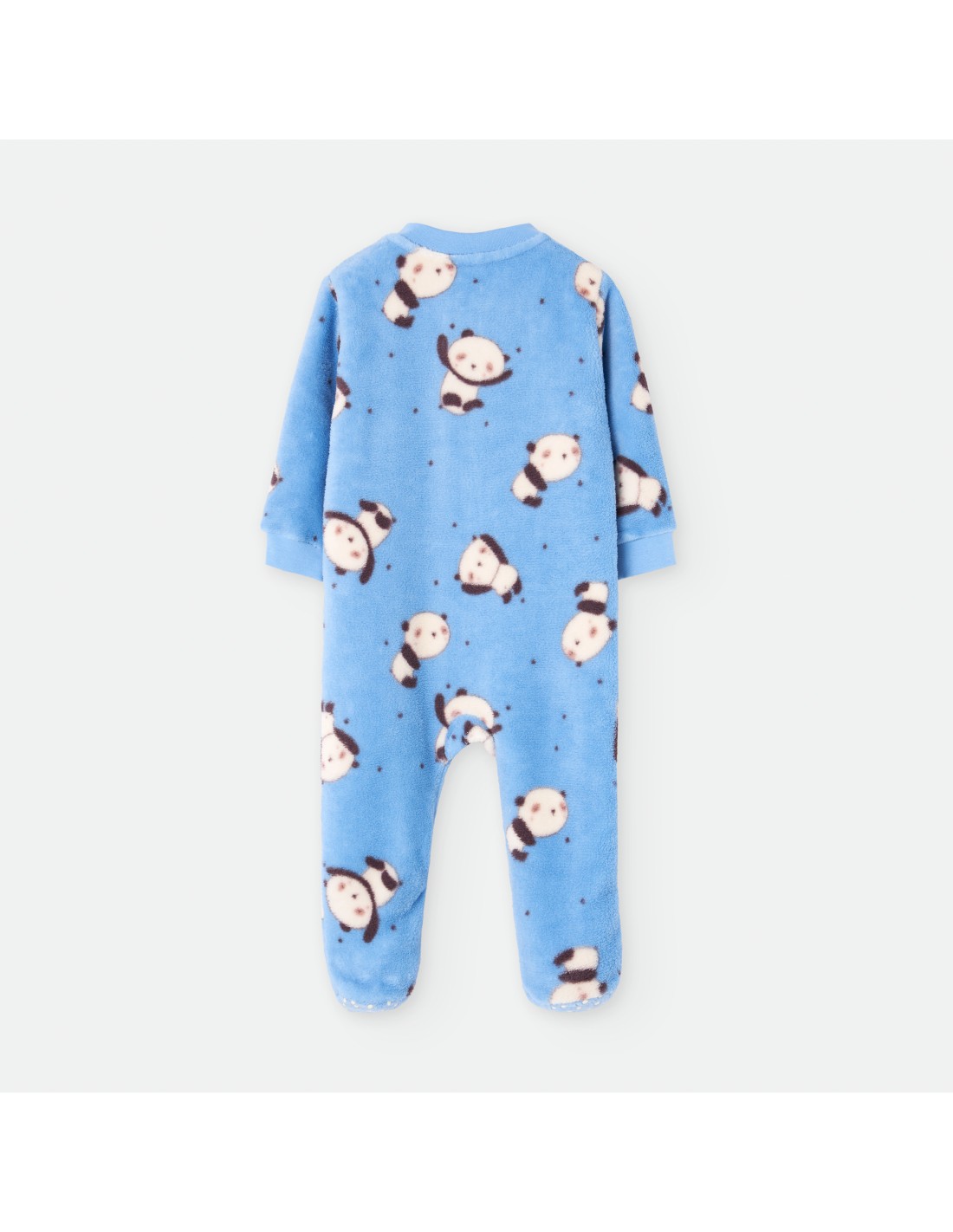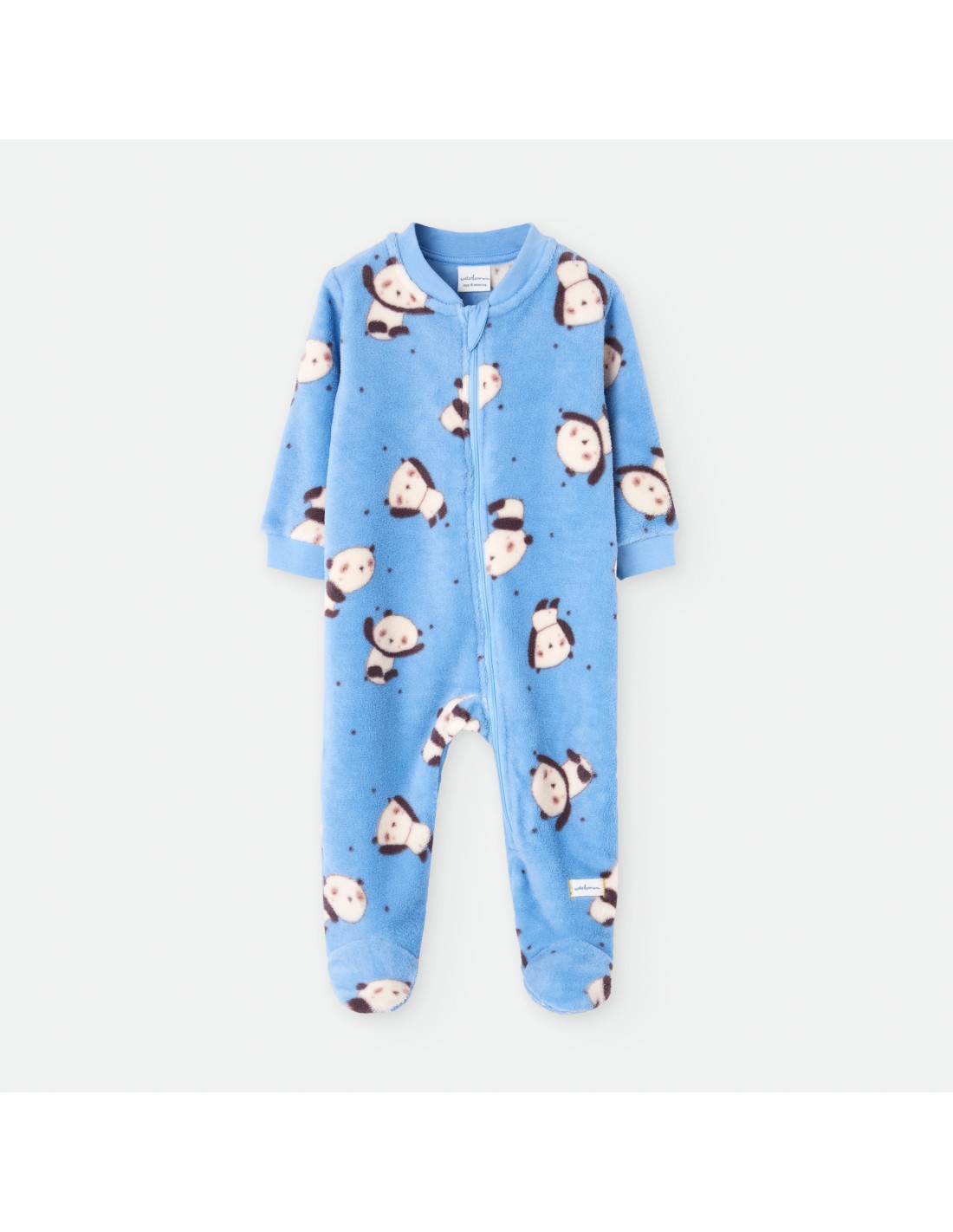 Pelele dormilón para bebé de la marca Waterlemon. De color azul con estampado de ositos panda.