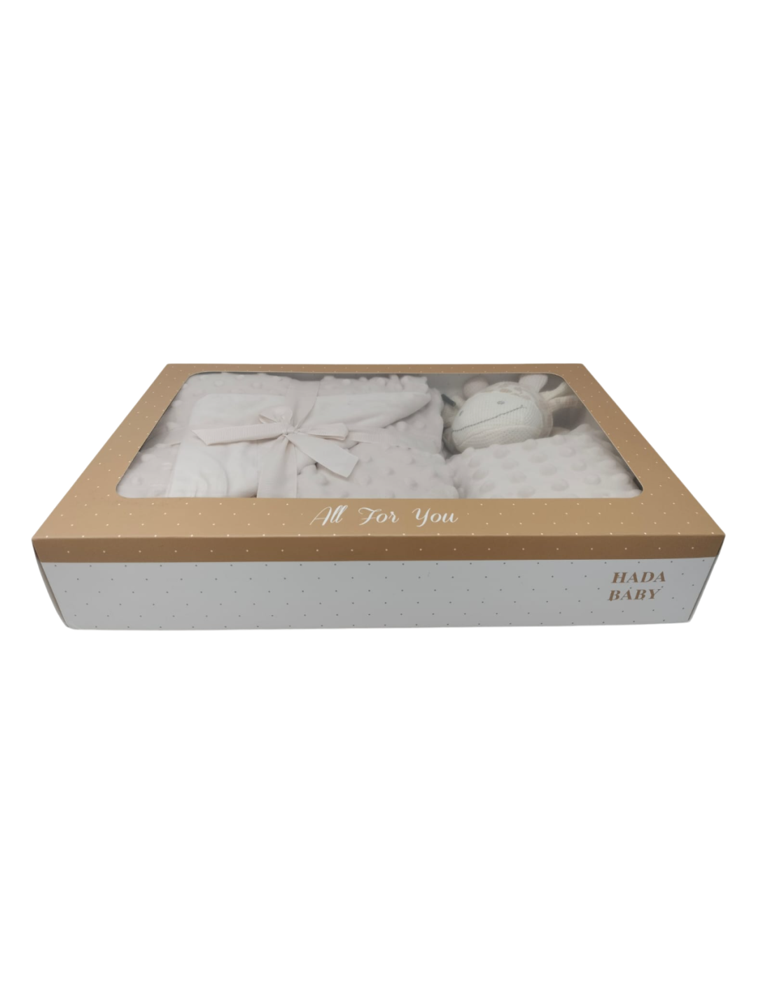 Caja de 12 mantas de topitos con dou dou de cabeza de crochet marca Hada Baby jirafa