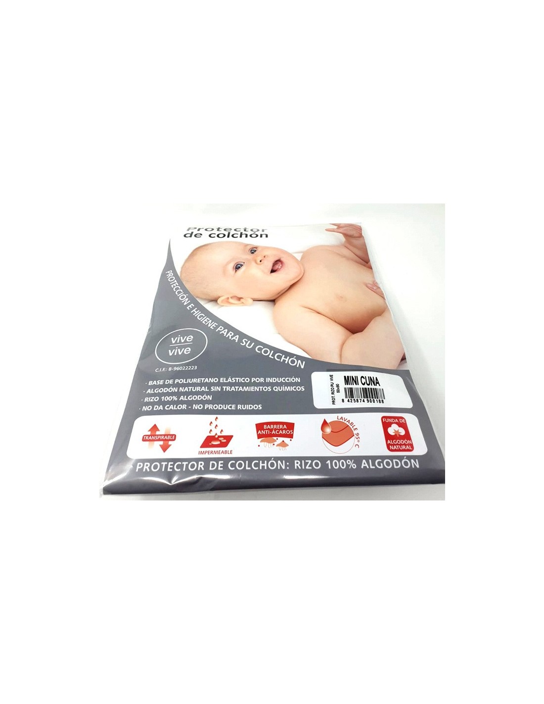 Protector de colchón de rizo para cuna, minicuna, coche y maxicuna marca Vive
