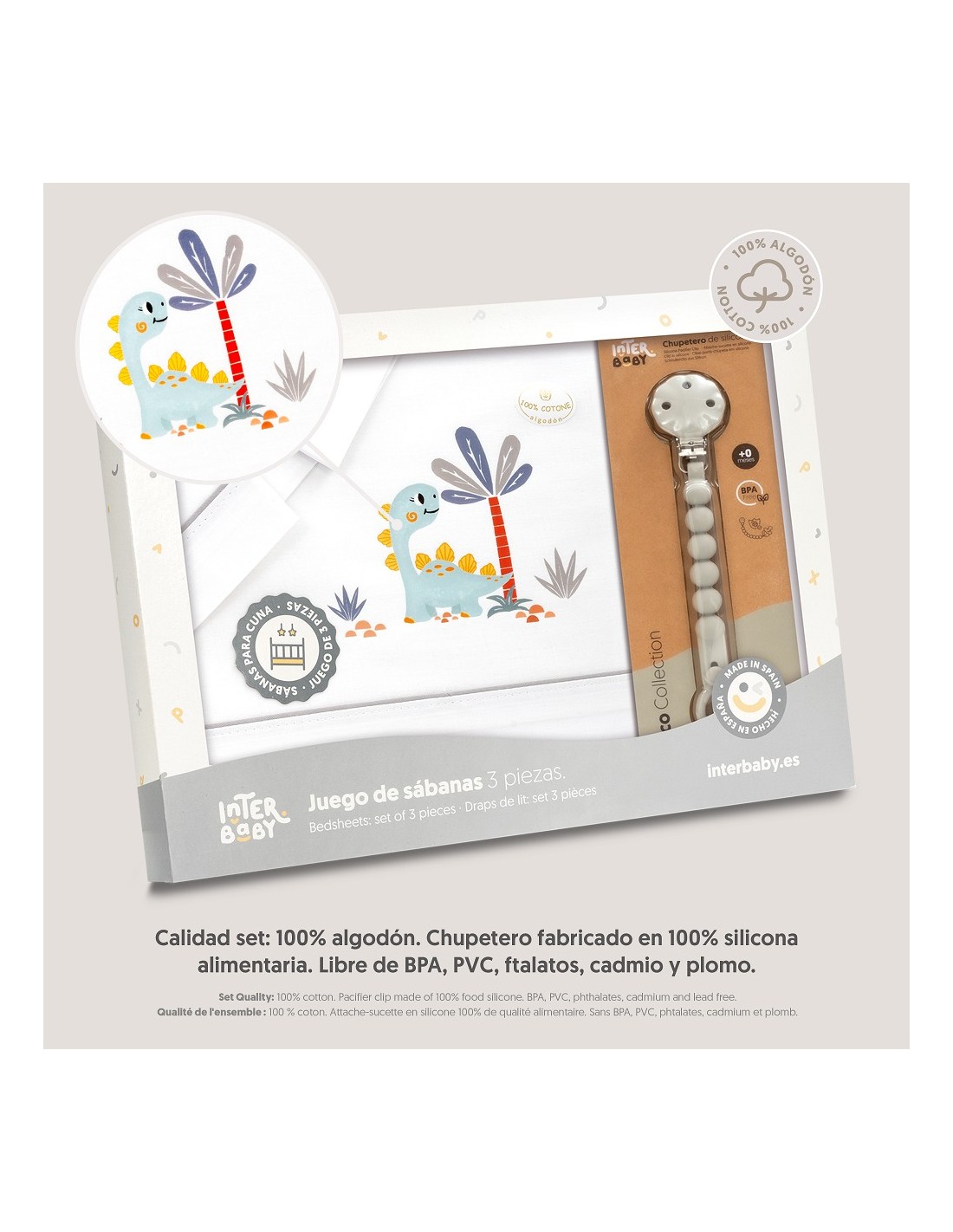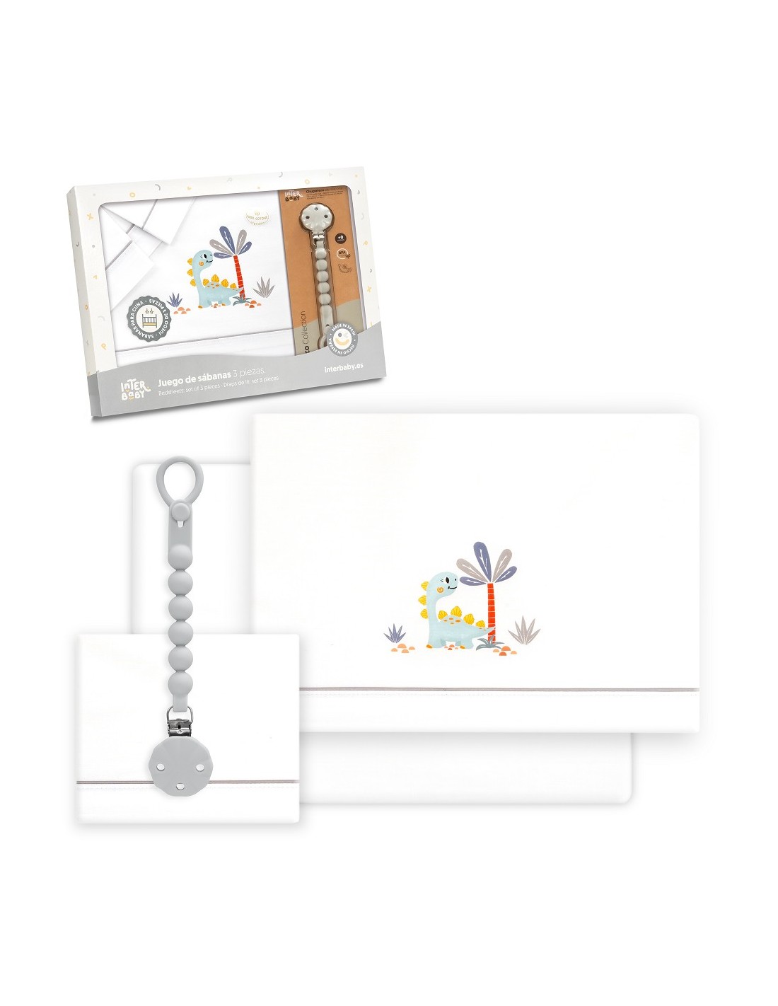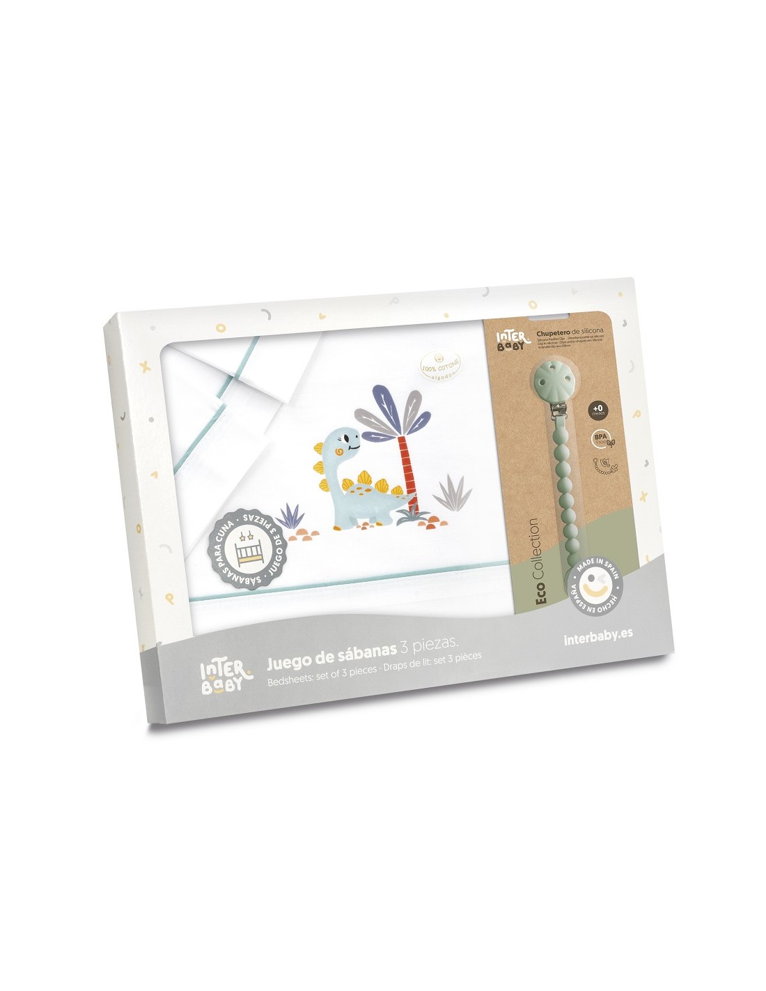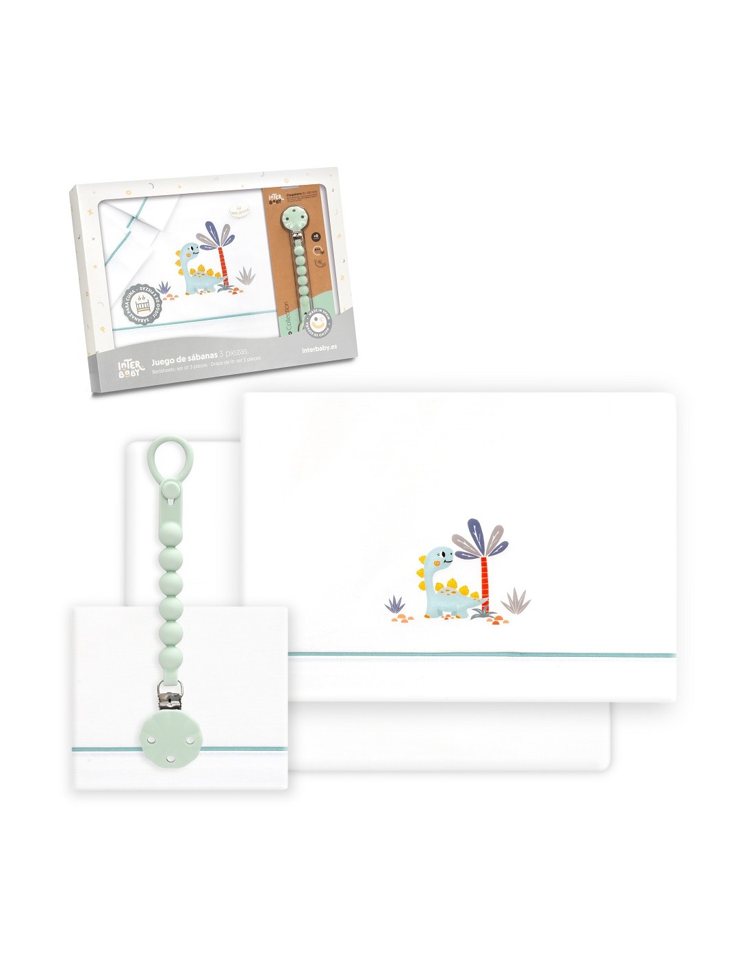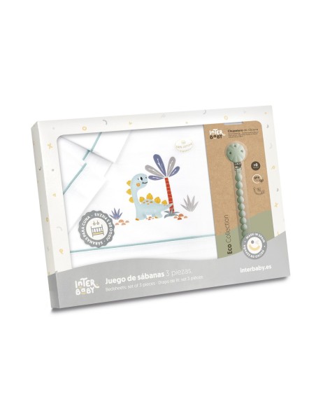 Juego de sábanas de algodón para cuna de bebé compuesto por: sábana bajera, sábana encimera y funda de almohada.