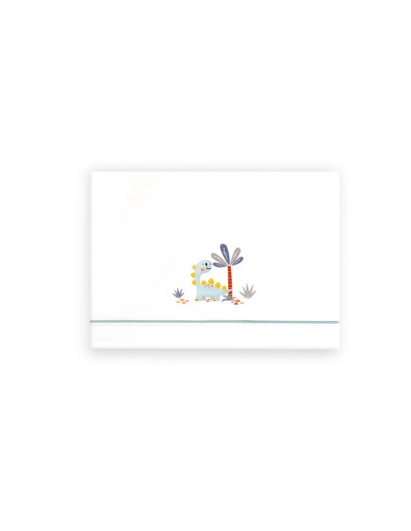 Diseño con dibujo de dinosaurio y palmera.