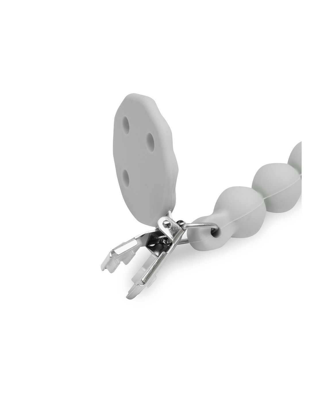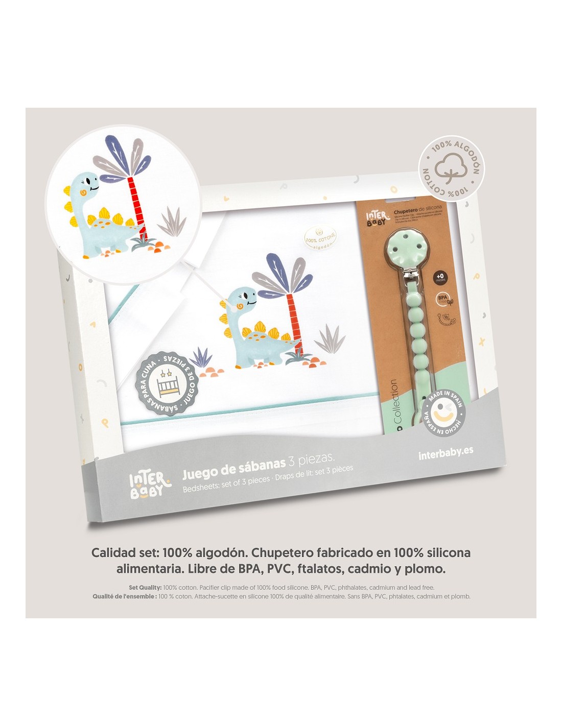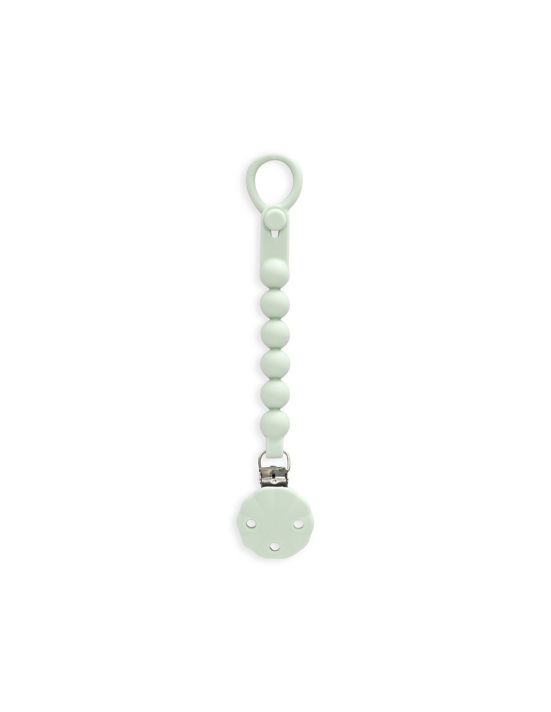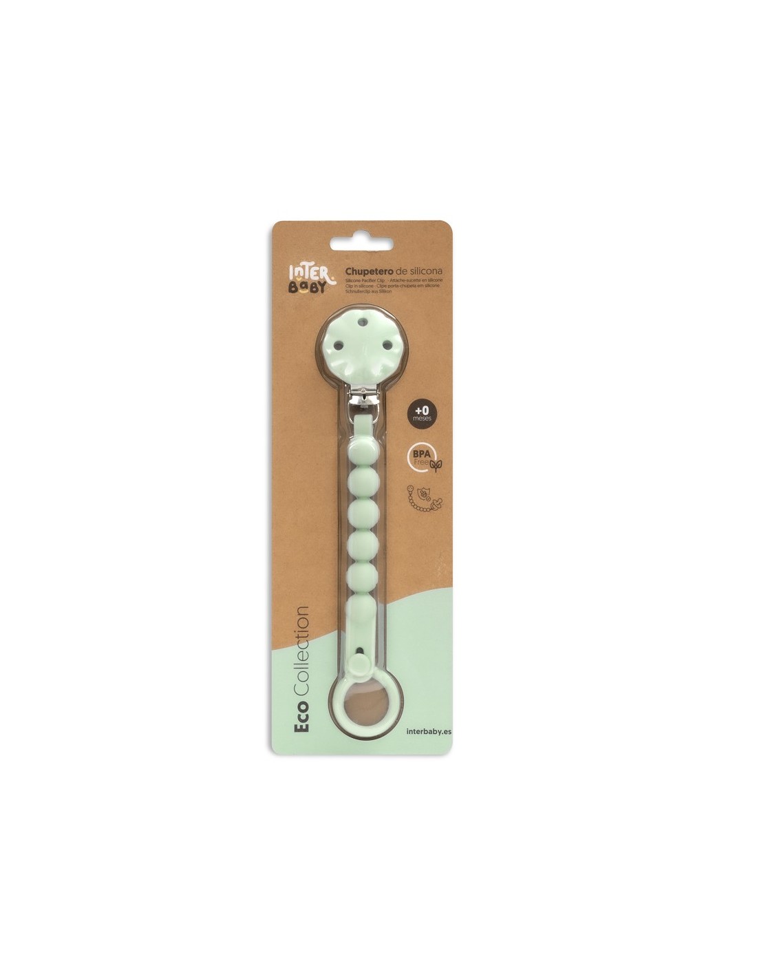 Con chupetero de silicona alimentaria. Libre de BPA, PVC, ftalatos, cadmio y plomo.