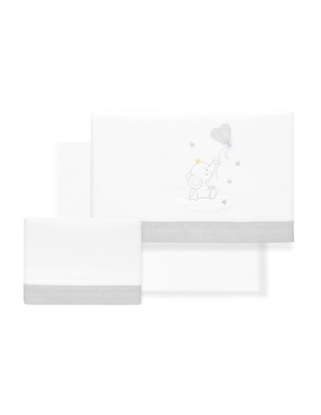Sábanas de cuna Juego de sábanas de 3 piezas para cuna marca Hada Baby happy HADA BABY HAD390 Juego de sábanas de 3 piezas para cuna. Composición: 100% algodón. Disponible en tamaño cuna y en color azul, rosa y gris. View