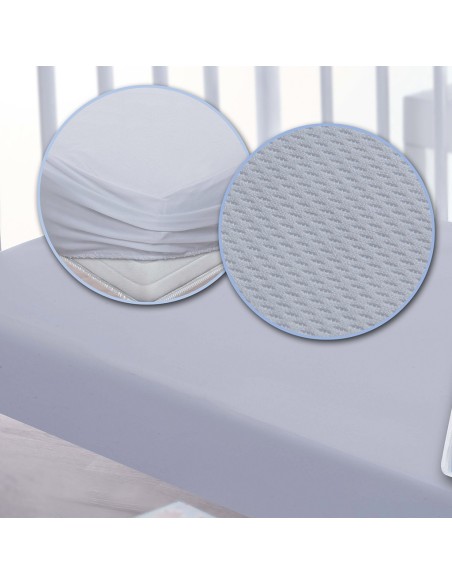 Fabricado con material impermeable que protege contra líquidos y manchas, prolongando la vida útil del colchón.