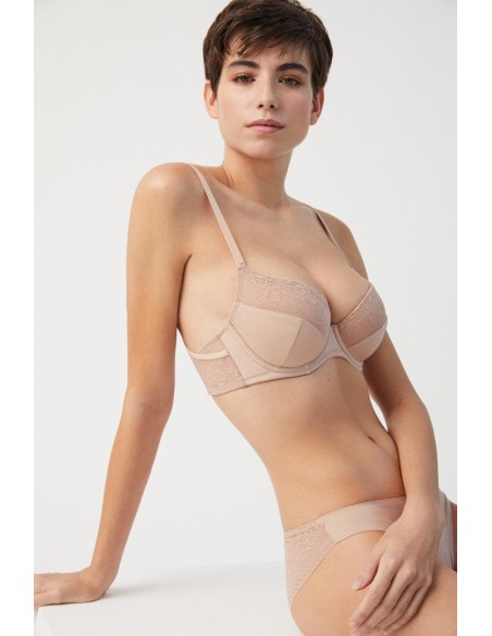 Sujetador con cierre hasta 4 posiciones para mayor sujeción e interior forrado en microfibra. La base de las copas incorpora segmentos en espuma para un mayor confort. Su diseño espalda anatómica junto con los tirantes anchos contribuyen a una mayor sujeción y comodidad. Lo detalles en encaje se prolongan a toda la espalda. Elige una braguita de la colección Special You y completa tu set lencero.