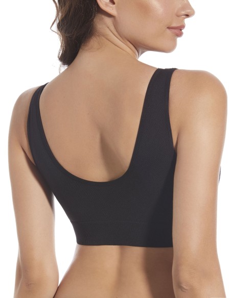 Sujetador sin costuras y con copa de relleno extraíble. Gran comodidad.