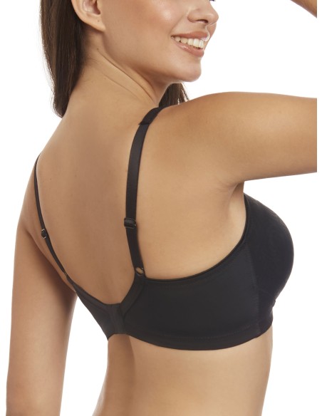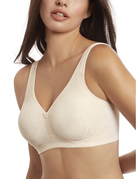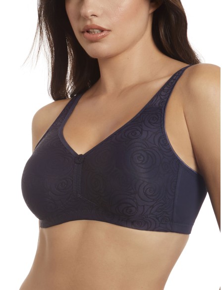 Sujetador sin aros y sin relleno. Fabricado con un elegante tejido estampado y un sutil escote en forma de V.