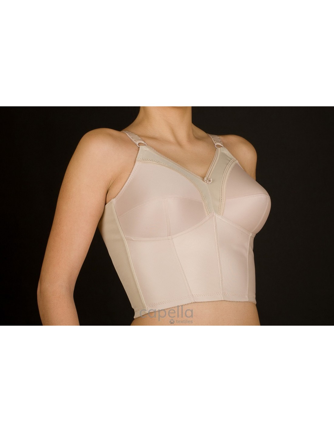 Sujetador de cuerpo fabricado en tejido simplex para mayor sujeción del pecho.